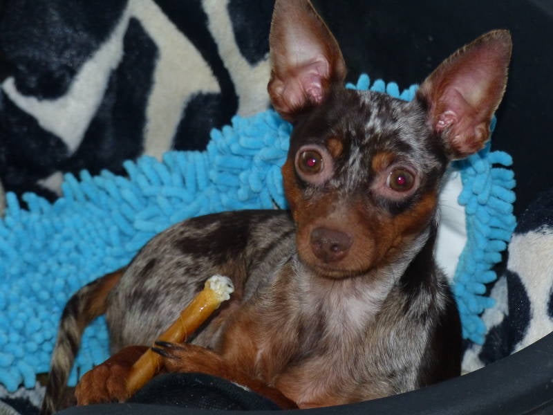 Ohja, ik heb net als Boy de kleur Choco and Tan maar mijn kleur is iets donkerder en roder. Ik ben ook maar een klein stukje groter dan hem, niet veel, maar Boy blijft de kleinste.