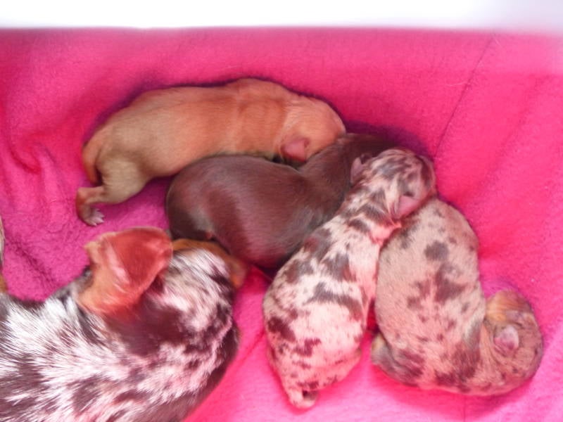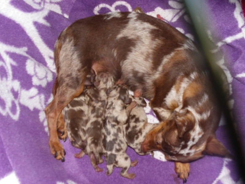Benjy x browny ( Choco and Tan Merle) : nestje van 4 pups